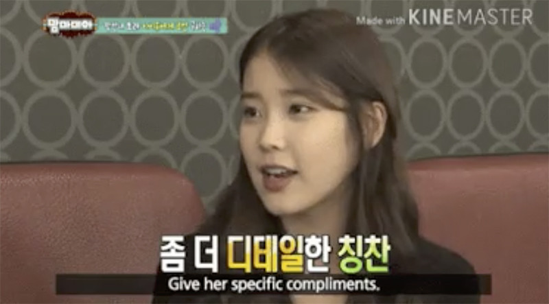 IU cho rằng các cô gái không chỉ đơn giản là thích được đánh giá cao bởi vẻ bề ngoài, con gái ai cũng muốn được yêu cả về con người, về tính cách. Vì thế các chàng trai sẽ phải rất chú ý để hiểu về tính cách về con người của các cô gái để luôn đưa ra những hành động thích hợp.