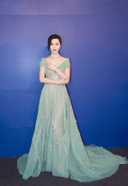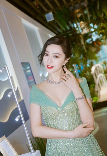 Nữ diễn viên 36 tuổi diện đầm xanh khoe khéo "vòng 1" đầy đặn gợi cảm.