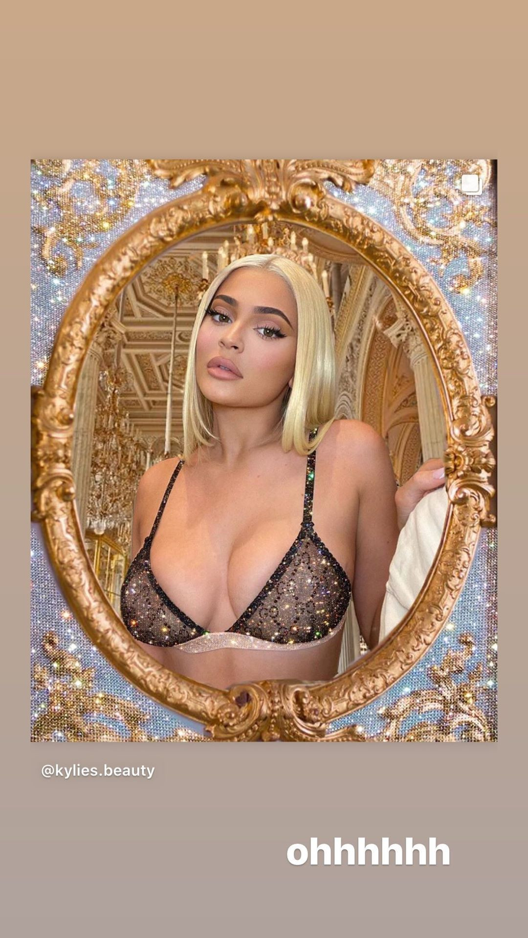 Trên trang cá nhân, Kylie Jenner vừa tung ảnh mặc áo ngực Gucci tôn vòng 1 đầy đặn hút triệu view.