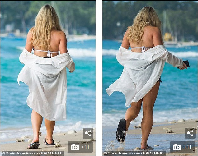 Hôm Chủ nhật (29/12, giờ địa phương), Saffron Barker được nhìn thấy đi dạo trên bãi biển ở Barbados (thuộc vùng biển Caribbean). Cô mặc áo bơi bé xíu, kết hợp với quần short jean và áo khoác mỏng, đi dép bệt và kính mát cài trên tóc.