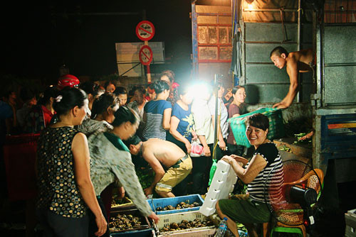Tấp nập suốt hơn 20 năm qua, chợ nằm ngay dưới chân cầu Long Biên, quận Ba Đình là nơi giao thương quan trọng và quen thuộc của người dân Hà Nội. Rục rịch từ 10h tối nhưng chợ đông và nhộn nhịp nhất phải từ 12h đêm trở đi với những chiếc xe tải chở đầy hàng hóa.