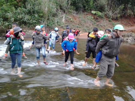Không chỉ vất vả trong việc động học sinh đến lớp, mà sự nghiệp gieo chữ của giáo viên nơi đây cũng đối mặt với không ít hiểm nguy. Vào mùa mưa, đường rừng núi trơn trượt nhưng các thầy cô vẫn phải bám làng đi vận động, đưa đón học sinh.