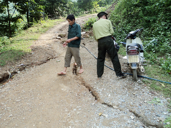 | Nhiều vết nứt xuất hiện tại xã Lượng Minh, Tương Dương. |