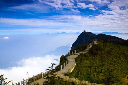 Đường lên đỉnh cao nhất của Nga Mi - khu vực Kim Đỉnh dài chừng 1 km. Tại đây có những bậc đá dài nối đuôi nhau để du khách thử sức chinh phục. Nếu quá mỏi chân, tại trạm cuối, du khách có thể đi cáp treo khoảng 3 phút là tới Kim Đỉnh. Đường đi vất vả cheo leo nhưng không gian bồng bềnh của biển mây như tiên cảnh khiến khách quên đi mọi mỏi mệt.