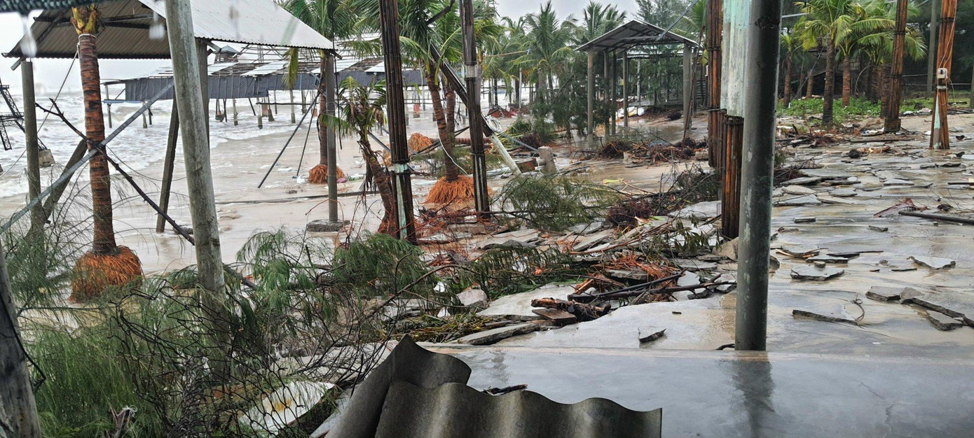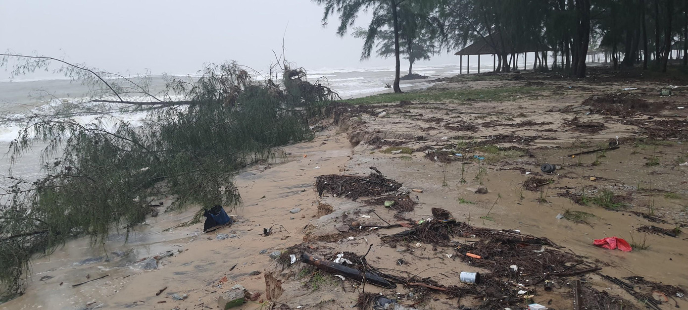 Trước đó, do ảnh hưởng của bão số 6, từ đêm 18 đến sáng 19/10, khu vực ven biển qua các thôn Bình An, Cảnh Dương (xã Lộc Vĩnh, huyện Phú Lộc) xuất hiện triều cường cao bất thường, nước dâng cao từ biển kết hợp sóng lớn tràn vào bờ gây nên tình trạng sạt lở, xâm thực nghiêm trọng. Sóng biển, triều cường đã phá hủy nền móng, đánh sập hơn 20 hàng quán ven biển của người dân, làm hư hỏng các công trình hạ tầng giao thông nông thôn, gây xói lở nặng khu vực rừng phòng hộ của xã.