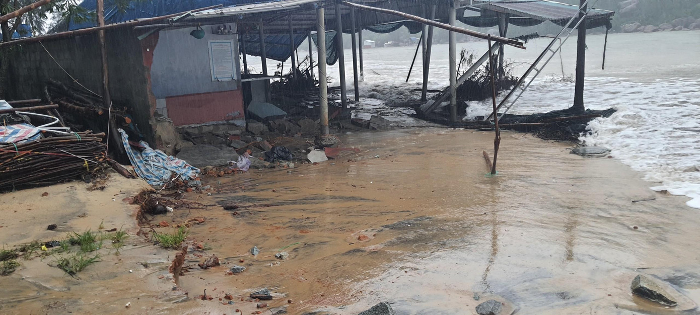 | Triều cường dâng cao kết hợp sóng lớn đã phá hủy nhiều công trình ven biển xã Lộc Vĩnh, huyện Phú Lộc, tỉnh TT-Huế. |