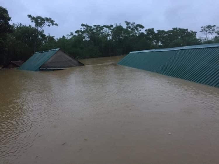 Theo báo cáo của UBND huyện Thanh Chương, trong đêm qua (29/10), toàn huyện đã di dời 869 hộ bị ngập đến nơi an toàn. Ảnh: Nhiều ngôi nhà ngập sâu trong nước