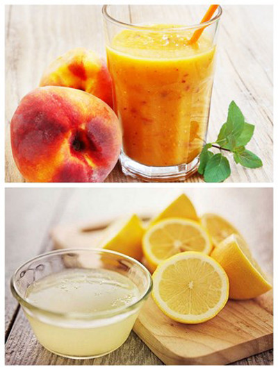 Nước ép đào và chanh: Những phụ nữ bị đầy hơi, khó chịu trong thời kỳ kinh nguyệt có thể uống nước đào và nước chanh vì nó giúp loại bỏ chất lỏng dư thừa ra khỏi cơ thể và giảm sự giữ nước. Nó cũng giúp giảm chứng khó tiêu và táo bón, có tác dụng thư giãn trên cơ bắp.