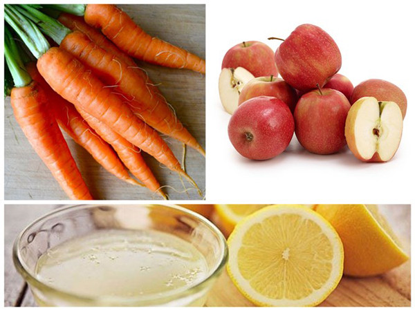 Cà rốt, táo và nước cốt chanh: Những thành phần như cà rốt, táo và chanh có thể cung cấp 25% nhu cầu kali hàng ngày của bạn. Kali là một khoáng chất có khả năng thúc đẩy tâm trạng, do đó nếu cảm thấy mệt mỏi, buồn chán, bạn có thể uống nước ép táo, cà rốt và nước cốt chanh.