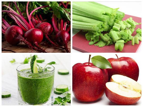 Củ cải đường, cần tây, táo và nước ép dưa chuột: Trong kỳ kinh nguyệt, bạn có thể trở nên chậm chạp và mệt mỏi, khiến công việc và nhiệm vụ hàng ngày gặp khó khăn. Nước ép giàu năng lượng với củ cải đường, cần tây, táo và dưa chuột có thể làm tăng mức năng lượng và giữ cho bạn tỉnh táo suốt cả ngày.