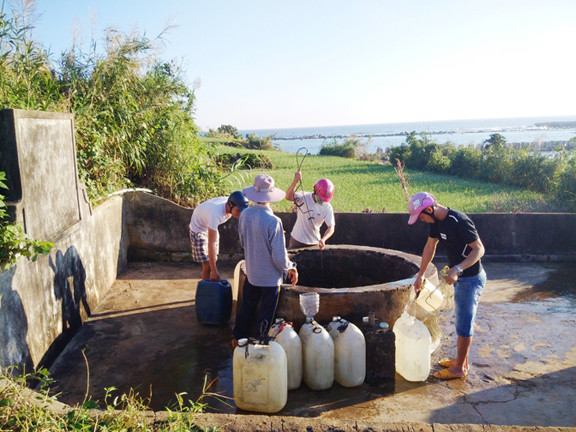Ông Long nói, giếng trên đảo rất nhiều, có cả ngàn cái, nhưng phần lớn nhiễm mặn. Và đóng vôi, không tốt cho sức khỏe. Nước mưa hứng mái tôn cũng có nguy cơ độc hại nên không ít ai dám uống.