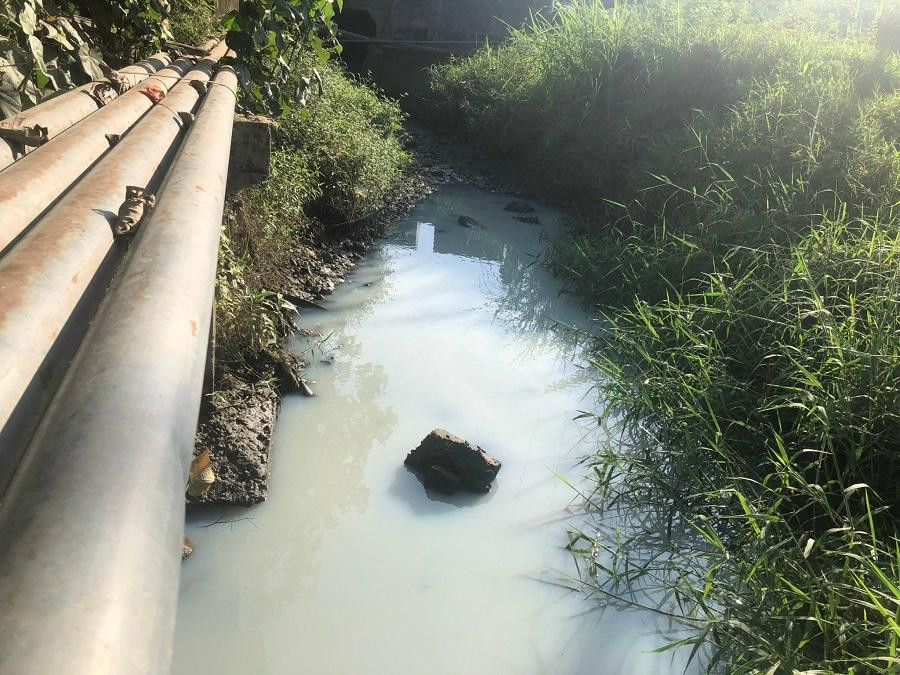 | Dòng nước màu trắng đục như sữa, bốc mùi hôi thối và có hiện tượng cá chết. |