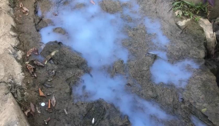 | Nước có màu trắng đục như sữa tràn ra hệ thống thoát nước khiến người dân hoang mang. |