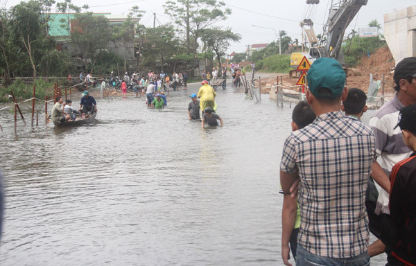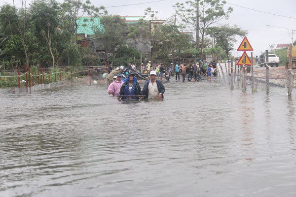 Được biết, đây là tuyến đường giao thông chính nối hai huyện Điện Bàn và Đại Lộc. Mưa lớn kéo suốt ngày và đêm 1/11 khiến tuyến đường DT 609, đoạn nằm dưới chân cầu Bình Long bắc qua địa phận thôn Nhị Dinh 3, xã Điện Phước, bị ngập sâu, có đoạn lên đến vài mét gây khó khăn cho các phương tiện và người qua lại.