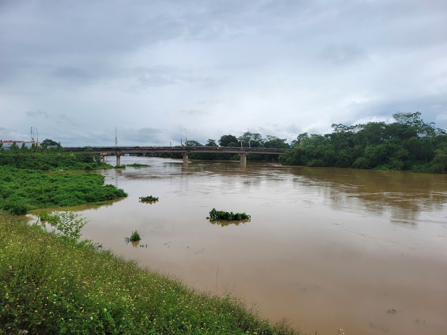 Mực nước sông Bưởi vẫn ở mức báo động 2, để hỗ trợ người dân, chính quyền thị xã Kim Tân đã cử lực lượng Công an, dân quân tự vệ túc trực ở bên kia đập tràn, không cho người dân đi vào vùng ngập lụt.