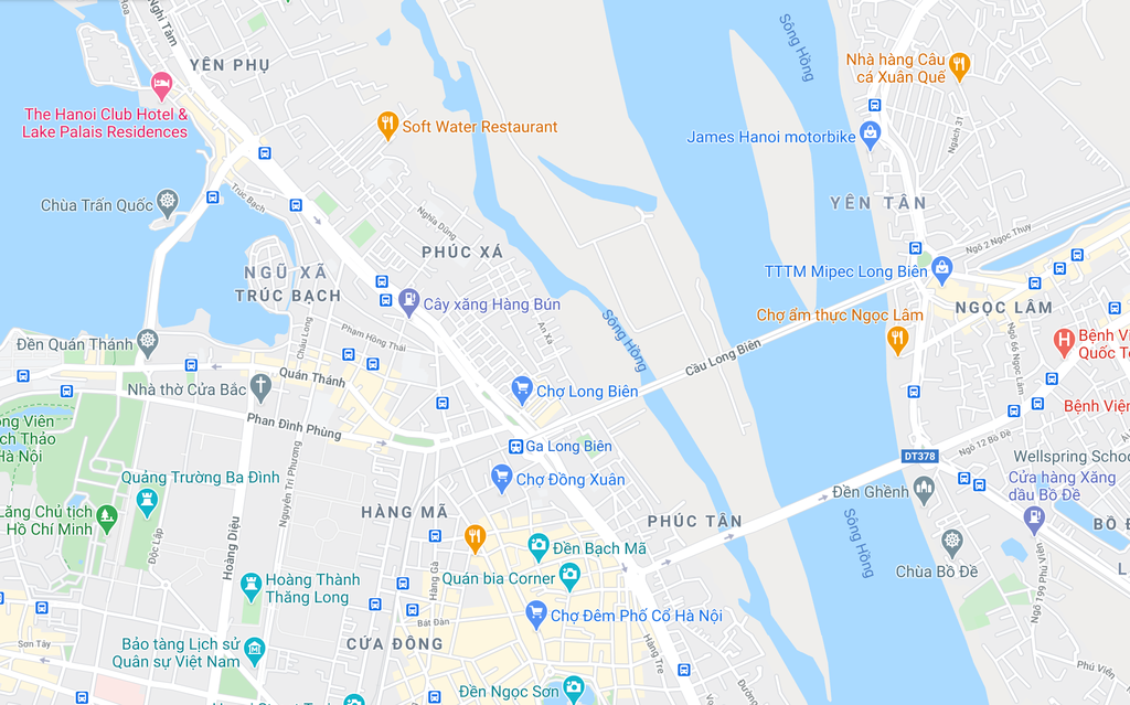 Nước dâng cao trên sông Hồng khu vực cầu Long Biên, Chương Dương. Ảnh: Google Maps.