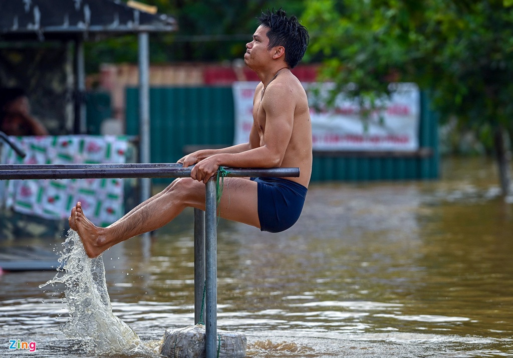 Trong hai ngày 20 và 21/8, mực nước sông Hồng lên rất nhanh và chưa có dấu hiệu dừng lại. Khu vực tập thể dục của người dân ở bãi giữa sông Hồng bị ngập sâu nên việc tập luyện gặp nhiều khó khăn.