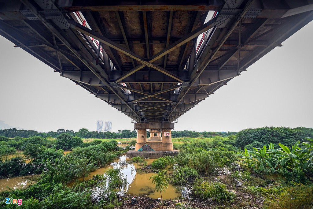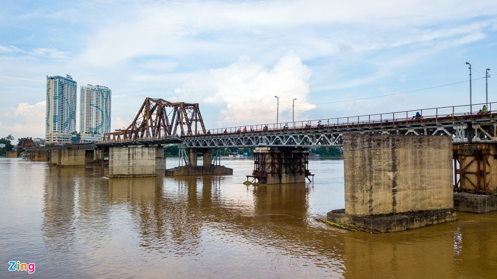 Tại cầu Long Biên, nước sông dâng lên khá cao, chảy cuồn cuộn. Mực nước quan trắc tại đây lúc 13h ngày 21/8 là 5,96 m, tăng 10 cm so với ngày 20/8 (5,86 m).