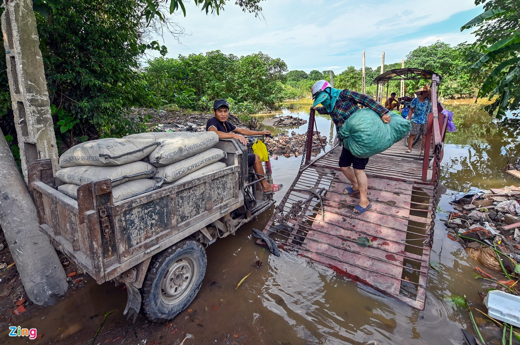 Việc đi lại của người dân ven bãi giữa sông Hồng gặp nhiều khó khăn. Con đường họ có thể đi bộ hoặc xe máy lâu nay giờ đã ngập chìm trong nước, nơi sâu nhất lên đến 2 m.