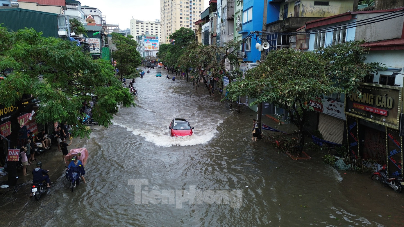 | Đường Phùng Hưng (quận Hà Đông) ngập sâu trong nước, có khu vực sâu đến gần 1m. |