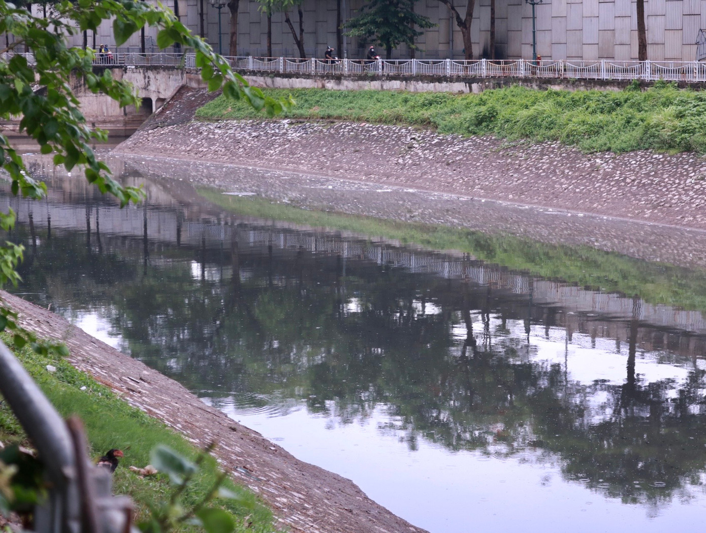 | Tại khu vực sông dọc đường Quan Hoa, có khu vực nước sông phân tách 2 màu rõ rệt, nhiều chỗ nước sông đen kịt. |