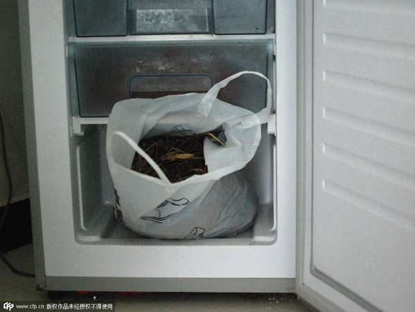 Một túi kiến đen được ông Chen cho vào ngăn đá tủ lạnh đến chết.