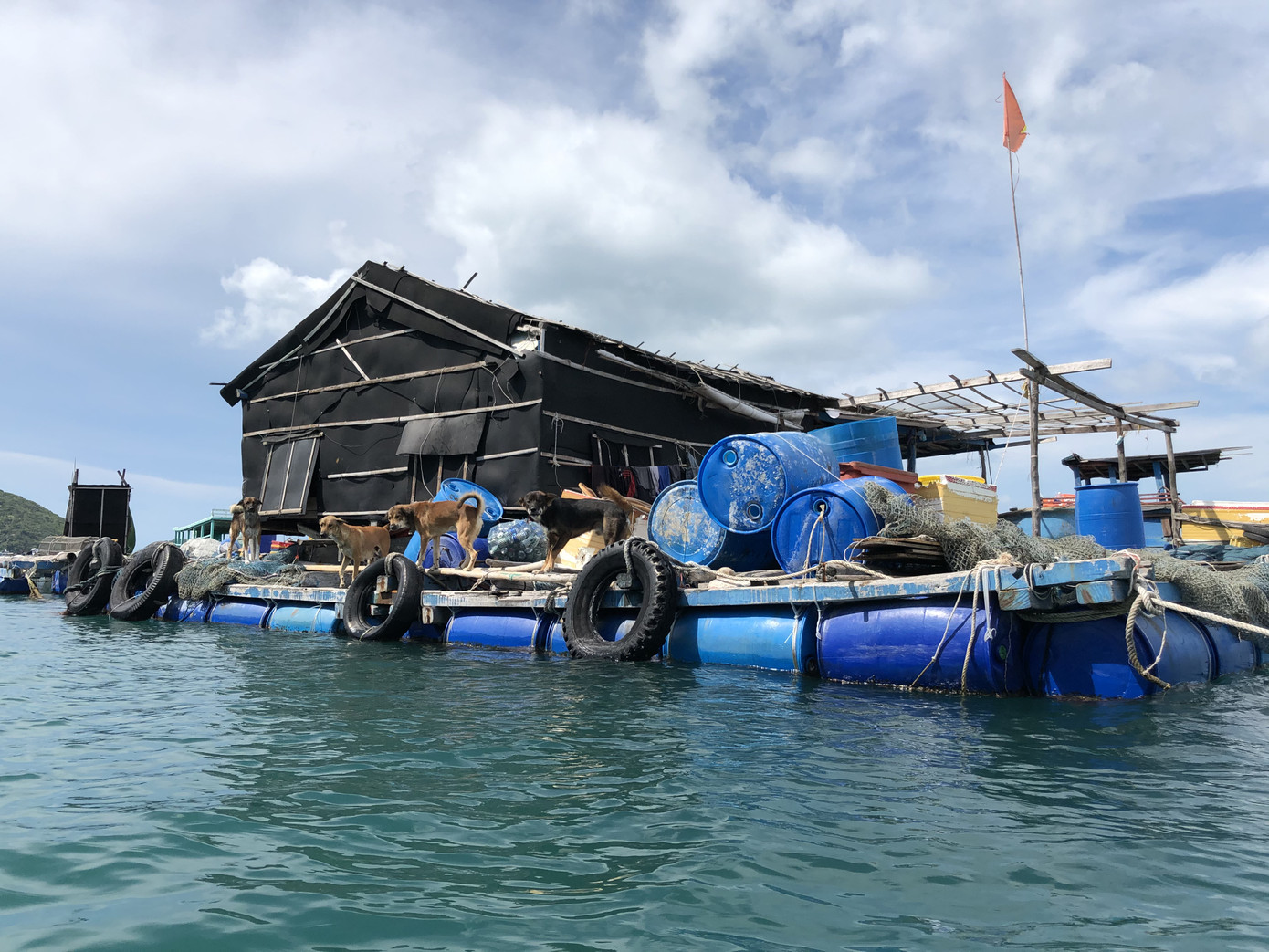 Bè cá của anh Lưu được neo trên biển, cách nhà không xa - Ảnh: Kim Hà.