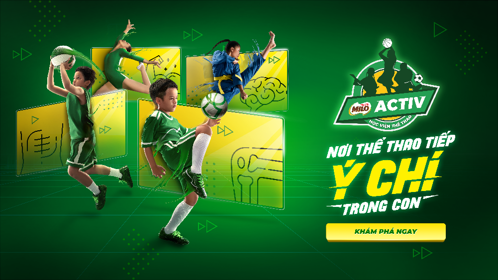 Trong hành trình gần 30 năm hiện diện tại Việt Nam, Nestlé MILO luôn theo đuổi sứ mệnh nuôi dưỡng thế hệ trẻ Việt Nam năng động khỏe mạnh và mang trong mình ý chí bền bỉ. Cùng với các sản phẩm dinh dưỡng để tiếp năng lượng, Nestlé MILO nỗ lực tiếp ý chí cho trẻ với các bài học thể thao thông qua chuỗi hoạt động thuộc chương trình Năng Động Việt Nam. Trong đó, nền tảng ‘Học Viện Thể Thao MILO Activ’ với chuỗi bài tập được thiết kế chuyên biệt sẽ đồng hành cùng mẹ và bé để tìm kiếm và phát triển đam mê thể thao.
