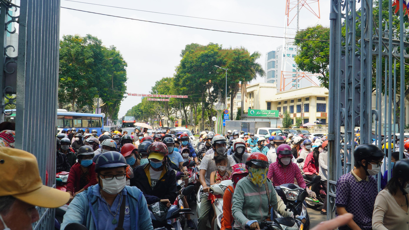 | Dòng người ken cứng ở khu vực cổng Thảo Cầm Viên (đường Nguyễn Bỉnh Khiêm, Quận 1). |