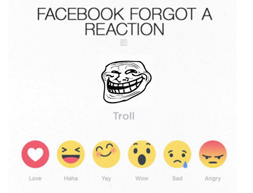 Facebook bổ sung nhiểu biểu tượng sắc thái mới, mà quên nút được dùng nhiều nhất Facebook là nút Troll (chơi khăm).