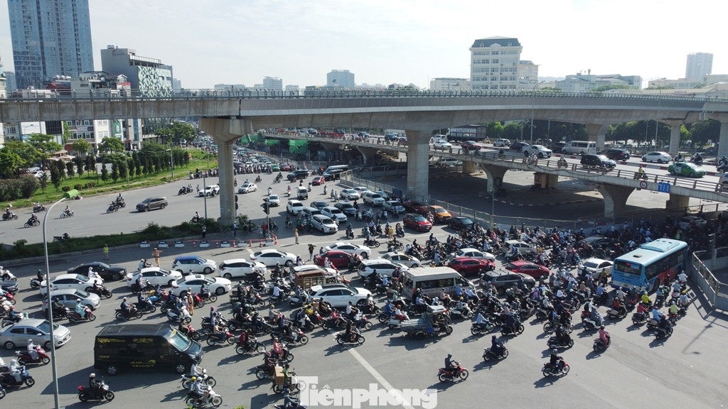 | Với hướng Hồ Tùng Mậu sáng nay, ùn tắc kéo dài đến gần cầu Diễn. |