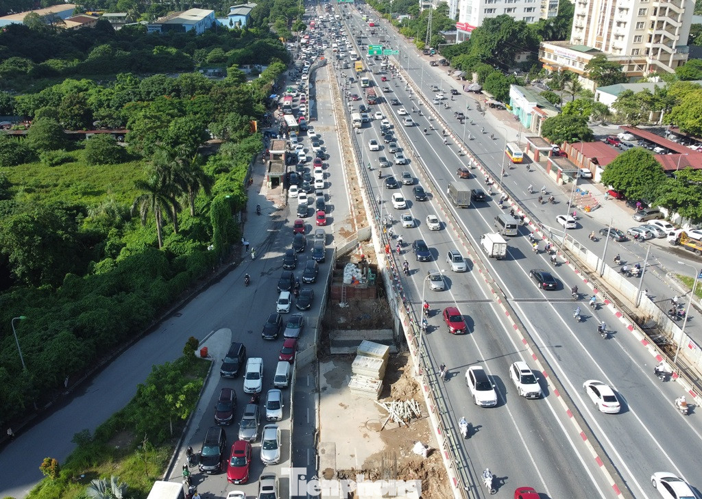| Tình trạng này cũng gây ùn tắc kéo dài với làn đường Phạm Văn Đồng (cầu Thăng Long) dẫn về nút. |