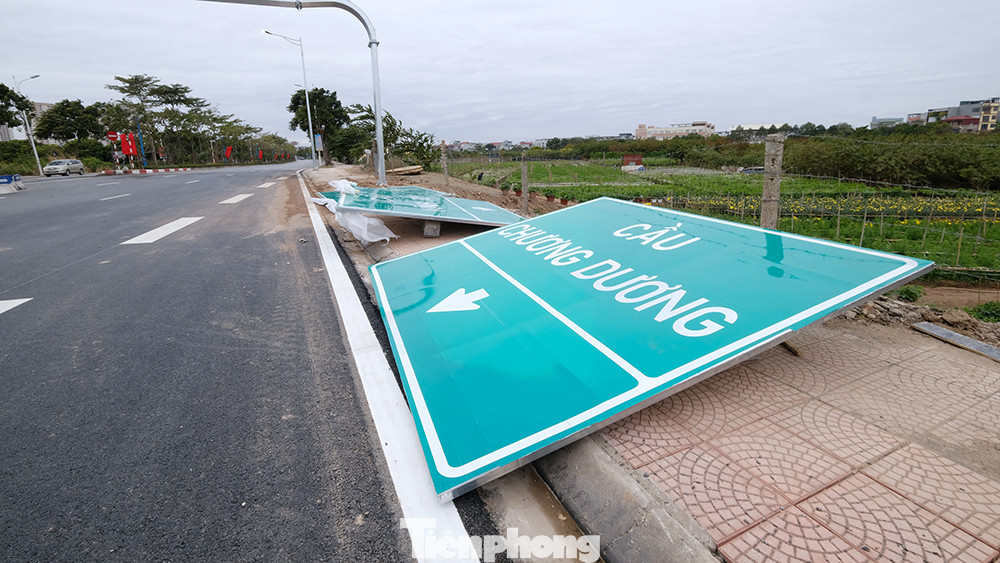 Công tác lắp đặt biển báo, biển chỉ dẫn đang được công nhân lắp đặt. Đây là công việc cuối cùng của dự án trước khi tiến hành lễ khánh thành thông xe vào sáng 10/1.