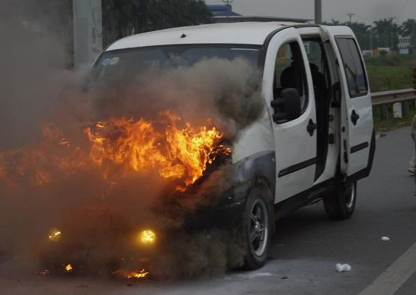 Ngọn lửa bùng lên dữ dội ở đầu xe ô tô.