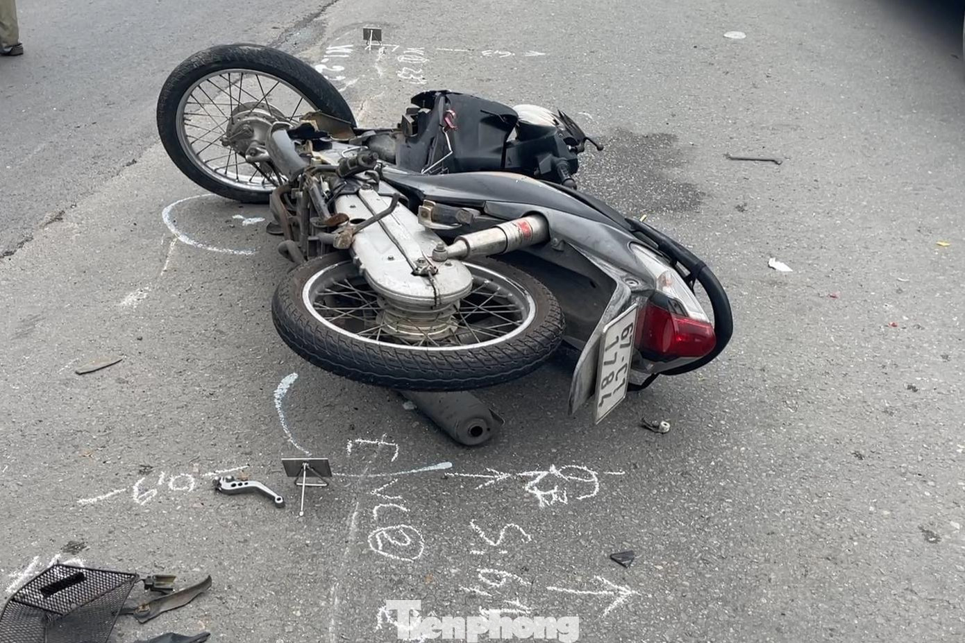 Tại hiện trường, một chiếc xe máy bị cuốn hẳn vào gầm xe ô tô biến dạng, 2 chiếc xe máy còn lại cũng bị hư hỏng, một bên phần đầu của ô tô bán tải cũng bị biến dạng sau cú tông.