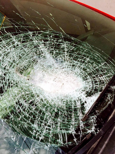 Vụ việc khiến kính chắn gió phía trước chiếc xe bị thủng 1 lỗ lớn, rạn vỡ. Thời điểm xảy ra vụ việc trên xe có 2 người là một cặp vợ chồng. Quá hoảng hốt trước tình huống bất ngờ, người vợ đã ngất xỉu.