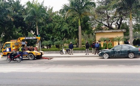 Do chiếc xe gặp nạn nằm ngay giữa đường, vụ việc lại thu hút rất đông người dân hiếu kỳ và người tham gia giao thông, nên lực lượng CSGT thành phố Phủ Lý cũng điều động quân số tiến hành điều tiết giao thông, tránh gây ách tắc kéo dài.