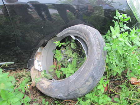 Cú đâm mạnh khiến anh Hoàng bị văng lên nắp capo và lăn xuống đường. Riêng chiếc ô tô 7 chỗ, sau khi gây tai nạn đã tiếp tục mất lái, đâm vào dải phân cách làm xê dịch những tấm bê tông rồi leo qua bồn hoa phân cách làn đường 2 chiều. Chiếc xe tiếp tục "bay" sang làn đường phía bên kia, chỉ dừng lại khi lao vào một bụi cây trên vỉa hè phía bên kia đường.
