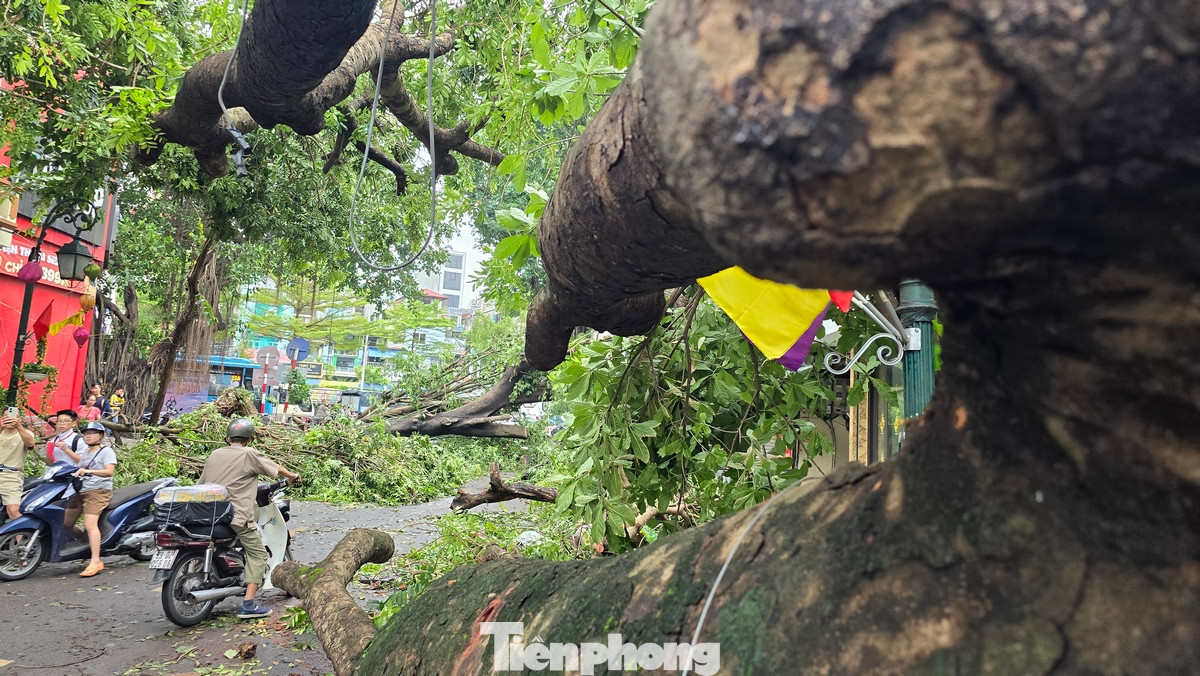 | Một cây bàng đổ chắn ngang đường Hàng Mã (quận Hoàn Kiếm). |