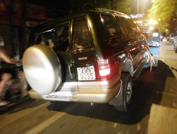 Ngay sau khi tông vào loạt xe máy, người điều khiển chiếc ô tô này không có dấu hiệu dừng xe xuống hỏi nạn nhân mà tiếp tục bỏ chạy theo hướng Đội Cấn - Liễu Giai - Hoàng Hoa Thám.