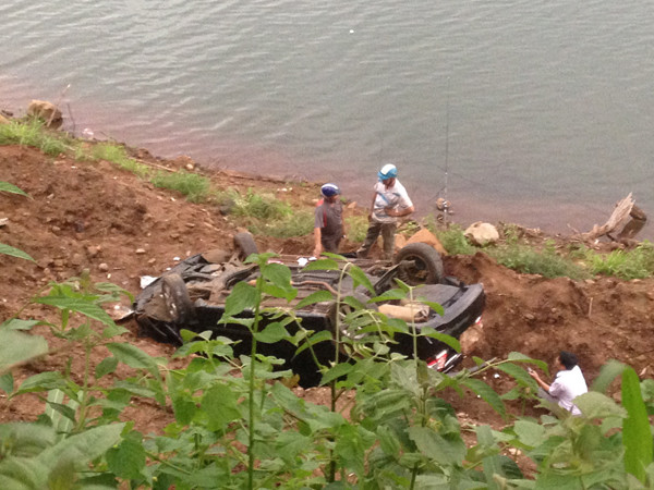 Tại hiện trường, một số công nhân đang thi công bờ kè Biển Hồ cho biết, chiếc xe ô tô đã lăn vài vòng từ độ cao khoảng hơn 10m trước khi nằm “phơi bụng” ở khu vực sát mép nước.