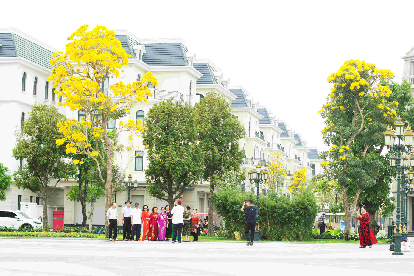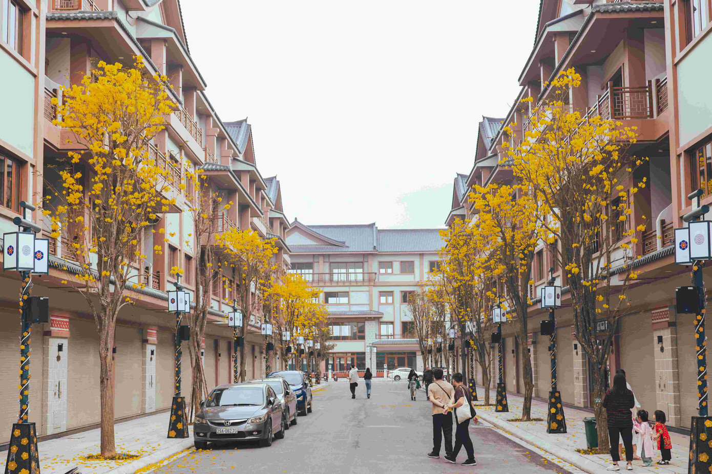 Đến Ocean City vào những ngày đầu tháng 4 này, du khách nào cũng thích mê mẩn trước khung cảnh hoa phong linh nhuộm vàng khắp chốn. “Chiếc áo vàng” này đã tạo nên diện mạo mới cho Quảng trường Kinh đô Ánh sáng và các dãy phố kế cận tại trung tâm Vinhomes Ocean Park 2. Sắc vàng rực rỡ của loài hoa có nguồn gốc từ những cánh rừng nhiệt đới Amazon đã làm bừng sáng cả không gian rộng lớn.