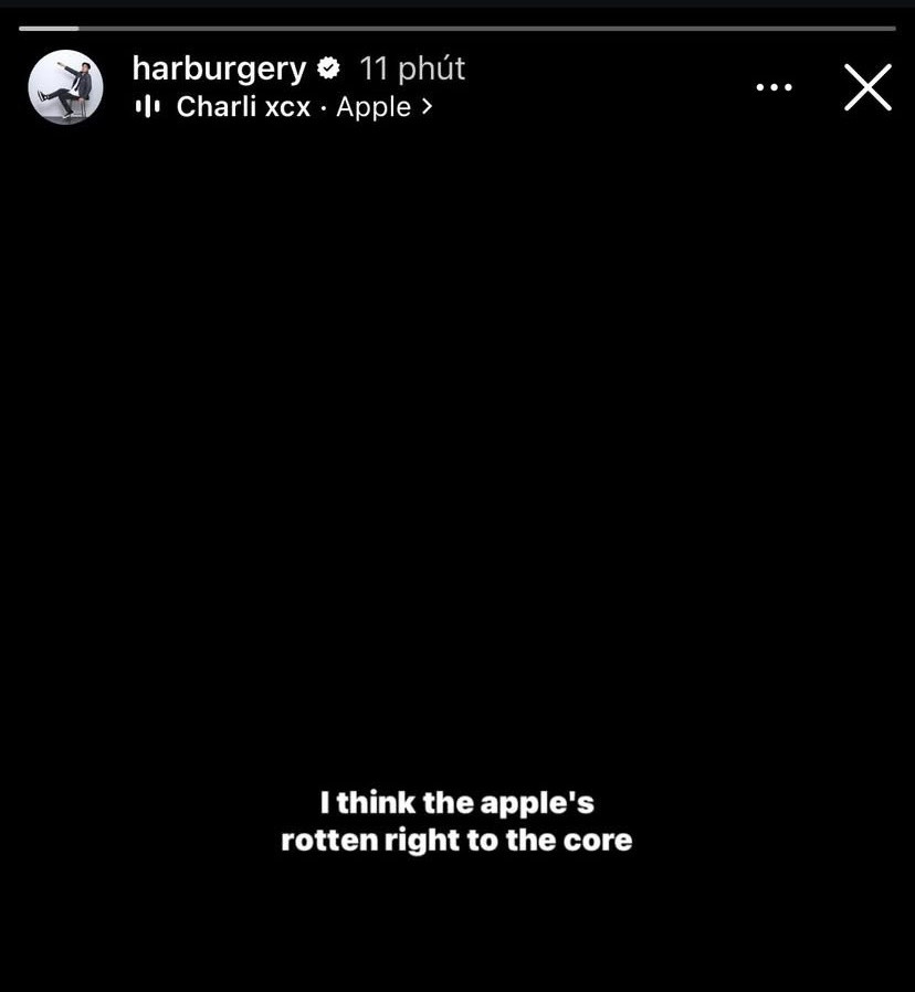 Đáng chú ý, giữa lúc mọi chuyện chưa được giải đáp rõ ràng và một bộ phận cư dân mạng có chiều hướng tấn công Meichan, phía Harry bất ngờ đăng một story đầy ẩn ý: “I think the apple’s rotten right to the core” (tạm dịch: Tôi nghĩ quả táo đã thối từ trong lõi), sau đó lại xóa đi khiến mọi người càng thêm tò mò.