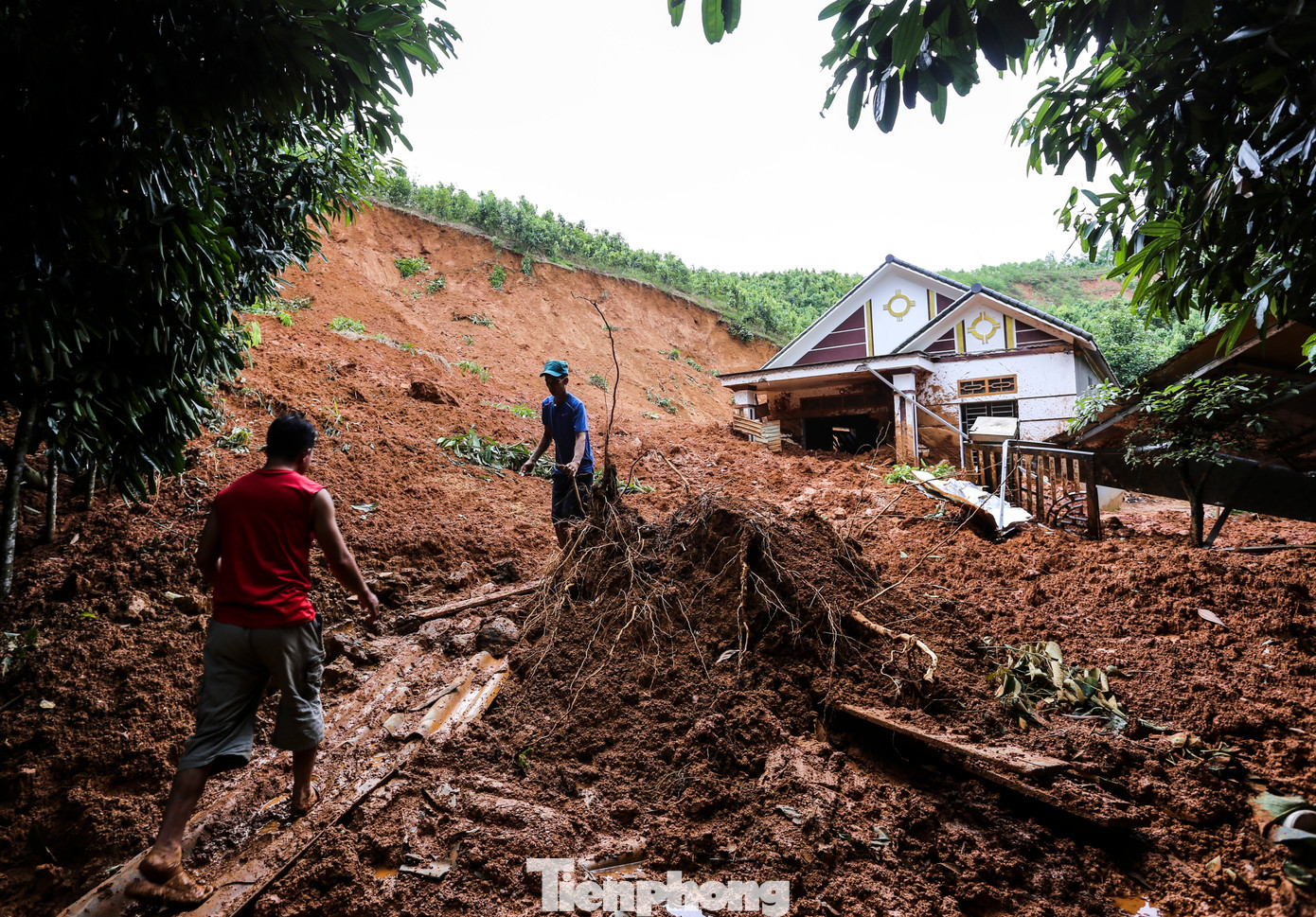 Kế bên, căn nhà mới xây của anh Phạm Văn Trung (34 tuổi) cũng bị đất đá sạt lở vò nát. Ông Phạm Văn Thanh (bố anh Trung) cho biết, mưa nhiều, núi có những dấu hiệu sạt lở, Trung đã đưa 3 người đi lánh nạn nhà hàng xóm. Nhưng khi quay trở lại lấy quần áo, đồ đạc thì nửa quả đồi đã sạt đánh sập ngôi nhà. Tuy thoát được nhưng anh Trung bị thương ở đầu phải nhập viện cấp cứu.
