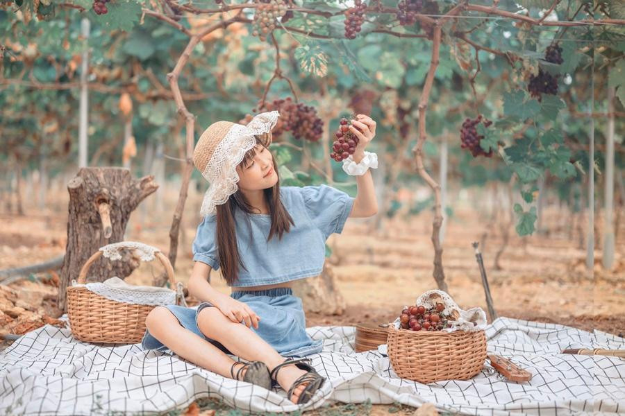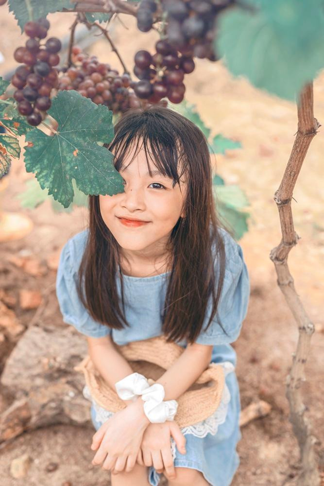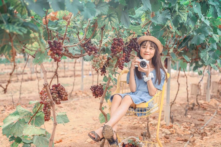 | Mới đây, ba bố con cũng có dịp trải nghiệm, làm bộ ảnh checkin vườn nho ở huyện Bình Xuyên, Vĩnh Phúc. |