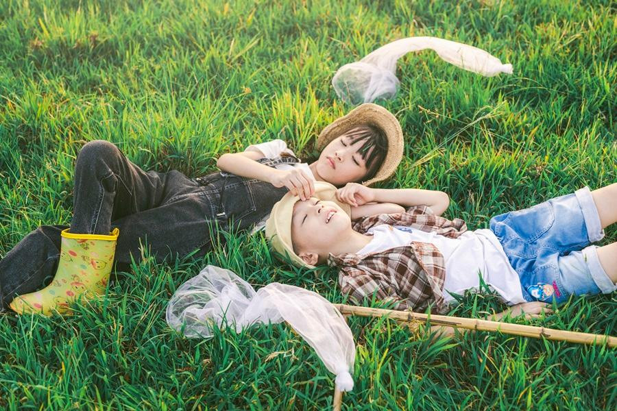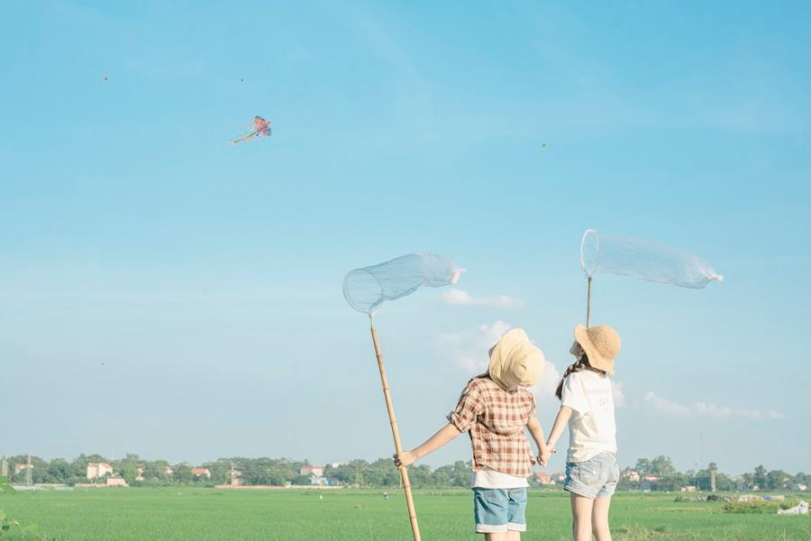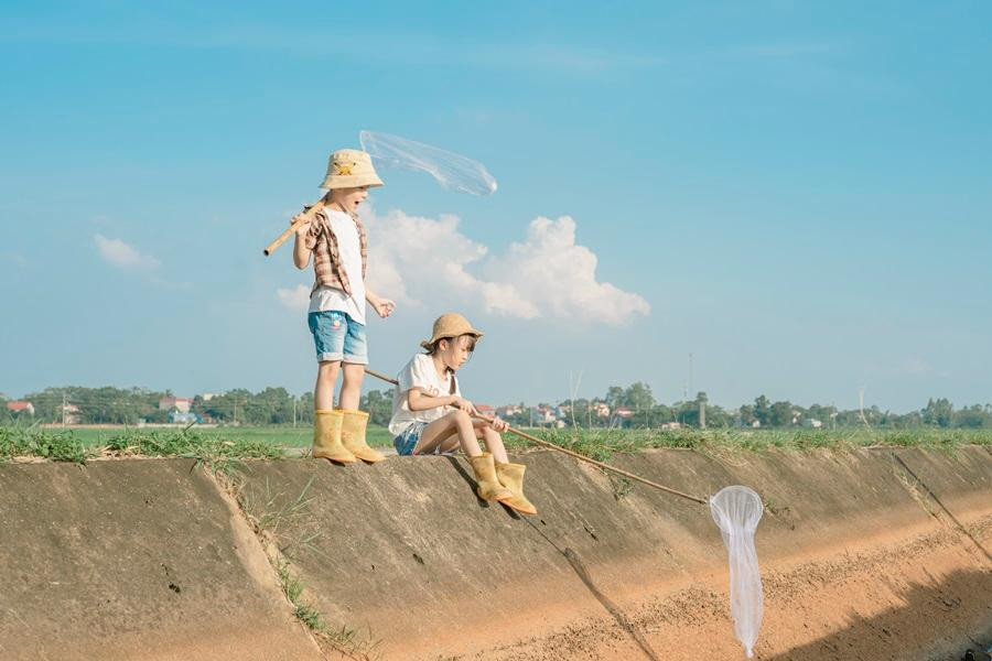 Tác giả bộ ảnh là anh Mạnh Tài ở Phúc Yên, Vĩnh Phúc, hai con là bé Nhím (8 tuổi) và Sóc (5 tuổi) tận hưởng buổi chiều thanh bình nơi đồng quê.