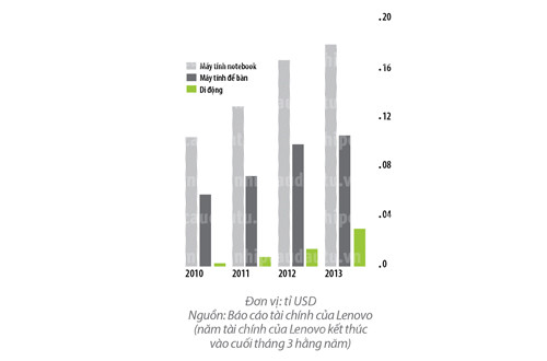 Theo dữ liệu được hãng nghiên cứu thị trường Mỹ IDC công bố vào cuối tháng 1.2014, Lenovo hiện là thương hiệu điện thoại thông minh đứng thứ tư thế giới. Thị phần của Công ty trong quý IV/2013 là 4,9%, tăng từ mức 4,1% cùng kỳ năm 2012. Con số này là nhỏ bé so với 28,8% của Samsung và 17,9% của Apple. Thế nhưng, lượng hàng bán ra của Lenovo đã tăng gần 50% trong quý này. Và Công ty hoàn toàn có thể tiến xa hơn thế với việc mua lại Motorola Mobility.