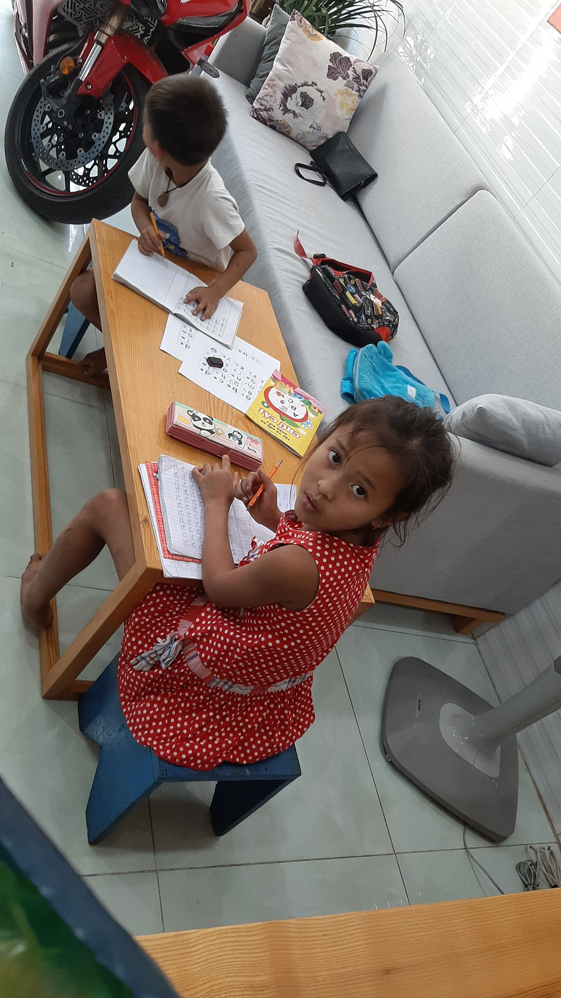 Lớp học đã “khai giảng” được gần 3 tuần, nằm ở quận 9, TP.HCM. “Học trò” nào cũng chăm chỉ, khi được đọc được viết con chữ, bọn trẻ mắt sáng lên thích thú, còn rất ngoan nữa, lúc tới hay về đều khoanh tay dạ thưa chào hỏi. Anh Thi chia sẻ: “Ban đầu bọn nhỏ cũng không biết làm vậy đâu, mà ‘thầy cô’ dạy nên tới lớp hay về nhà đều dạ thưa chào thầy cô, bố mẹ như vậy. Chắc bố mẹ ở nhà cũng vui lắm đó!”