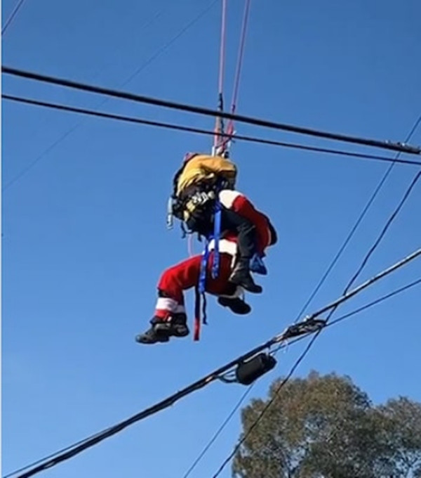 Công ty điện địa phương đã phải ngắt điện toàn bộ để đội cứu hỏa có thể cứu được “ông già Noel”.
