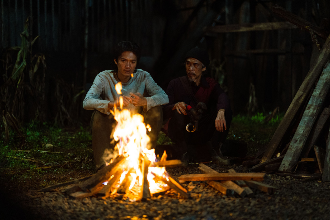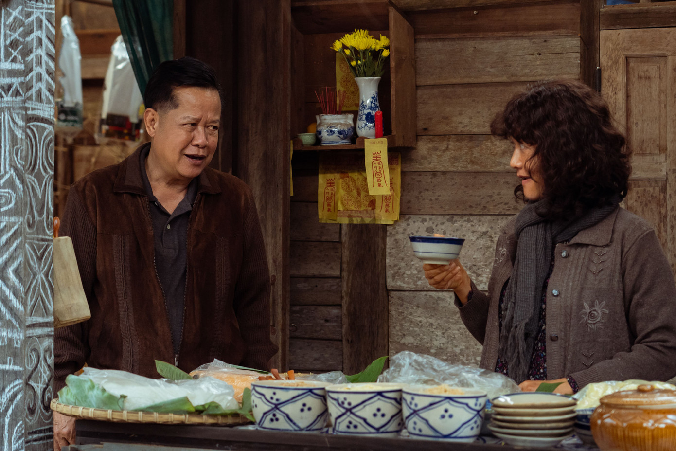 “Vai tôi nhỏ nên cũng không có gì quá vất vả, chỉ thương ê kíp. Bối cảnh nằm sâu trong rừng thông nên di chuyển đạo cụ khó khăn, đi phải đi bằng xe máy cày, thời tiết thì mưa lạnh suốt. Vì là phim kinh dị nên hầu hết phải quay ban đêm, mọi người thức đêm thức hôm, tôi rất thương”, NSND Thanh Nam kể về kỷ niệm trên phim trường.